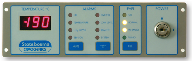 sıcaklık ve yüksek/ düşük sıvı azot seviye alarmları okunabilmektedir.