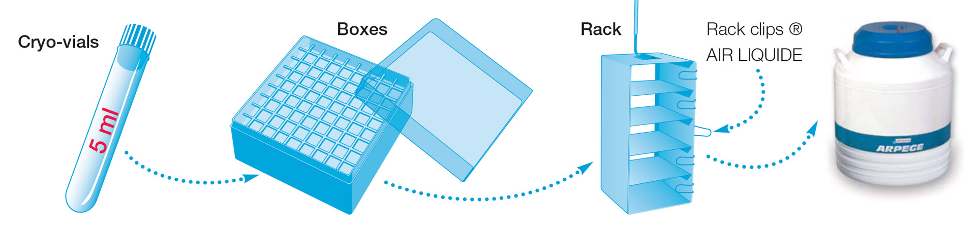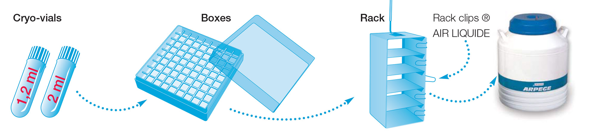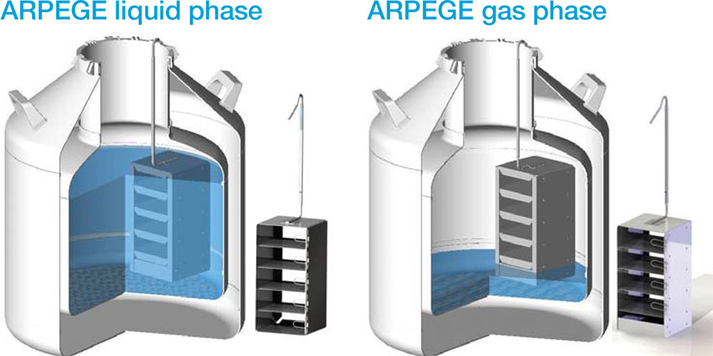 - Sıvı Azot Numune Depolama Tankları, Rack'lı seri; Cryopal-Air Liquide Arpege serisi; Arpege-40, Arpege-70, Arpege-110, Arpege-170, Arpege-55, Arpege-75