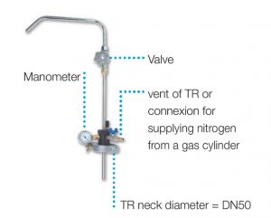 - Opsiyonel Tekerlekli taşıma ayağı, Sıvı azot aktarım musluğu